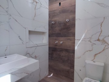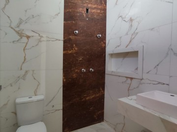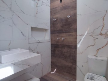 2 Suíte piso e revestimento em porcelanato, Bancada de granito, preparado para água quente, teto rebaixado, Nicho.