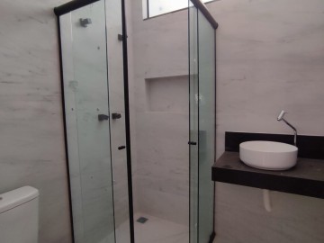 UM BANHO SOCIAL (PISO PORCELANATO, BANCADA DE GRANITO, TETO REBAIXADO, BOX BLINDEX, NICHO)