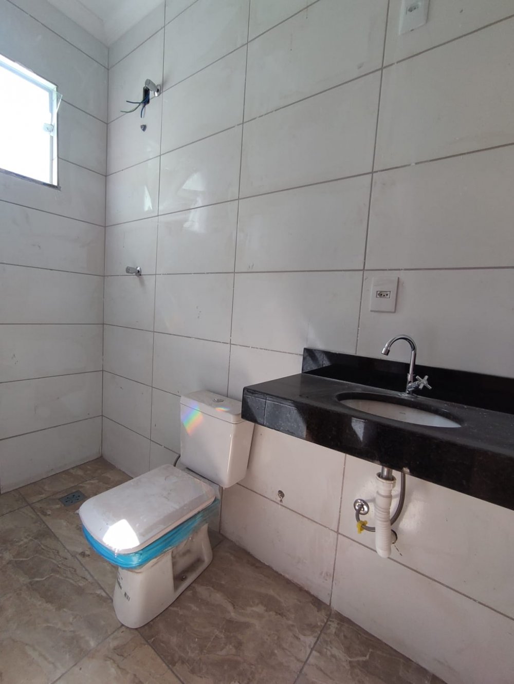 1 Banho social piso e revestimento em ceramica,Bancada de granito.