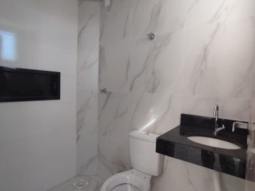 1 Banho social piso em porcelanato, revestimento em ceramica, Bancada de granito, teto rebaixado, Nicho.