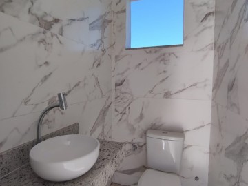 1 Banho social piso e revestimento em porcelanato, Bancada de granito, teto rebaixado. 1 Cozinha piso e revestimento em porcelanato, Bancada e pia em granito, teto rebaixado. Área de serviço coberta.
