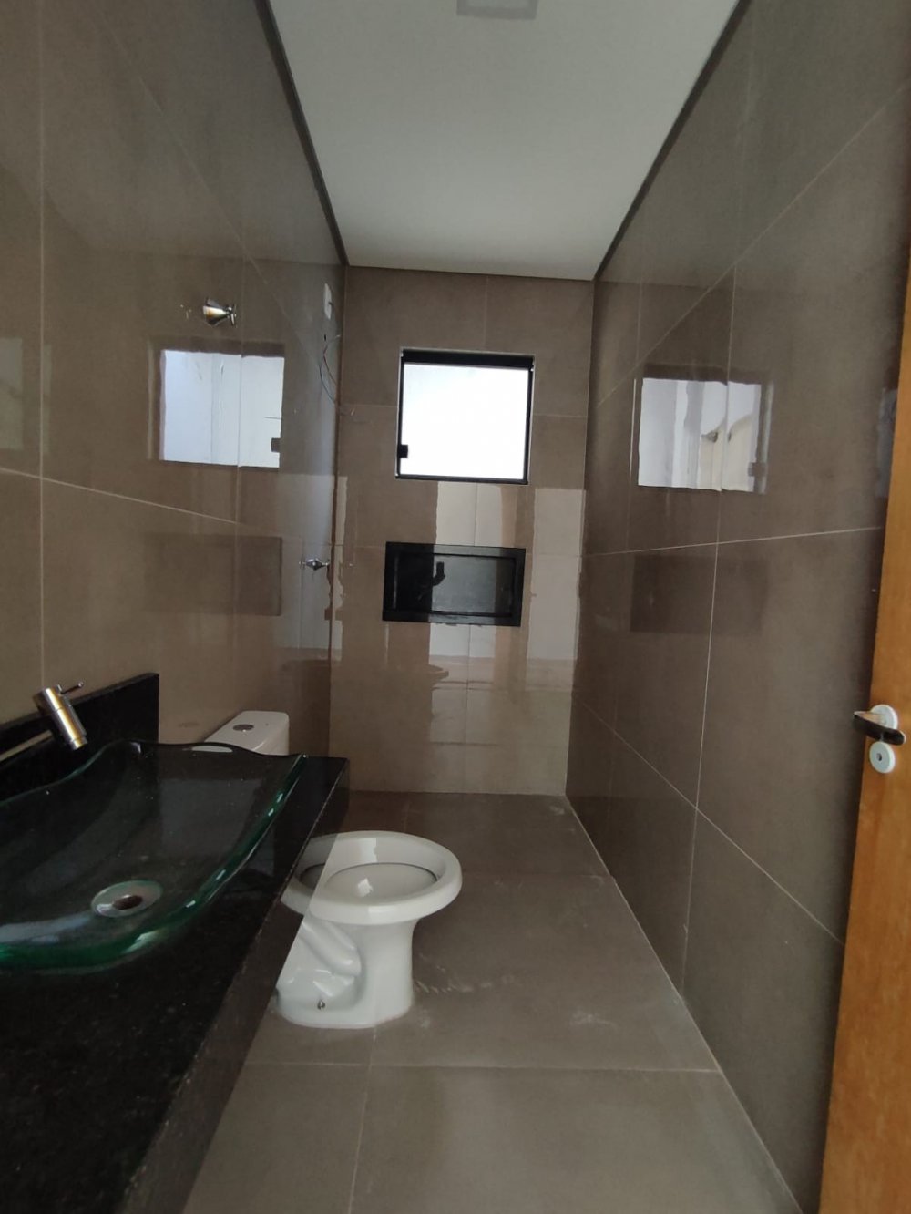 1 Banho social piso e revestimento em porcelanato, Bancada de granito, teto rebaixado, Nicho.
