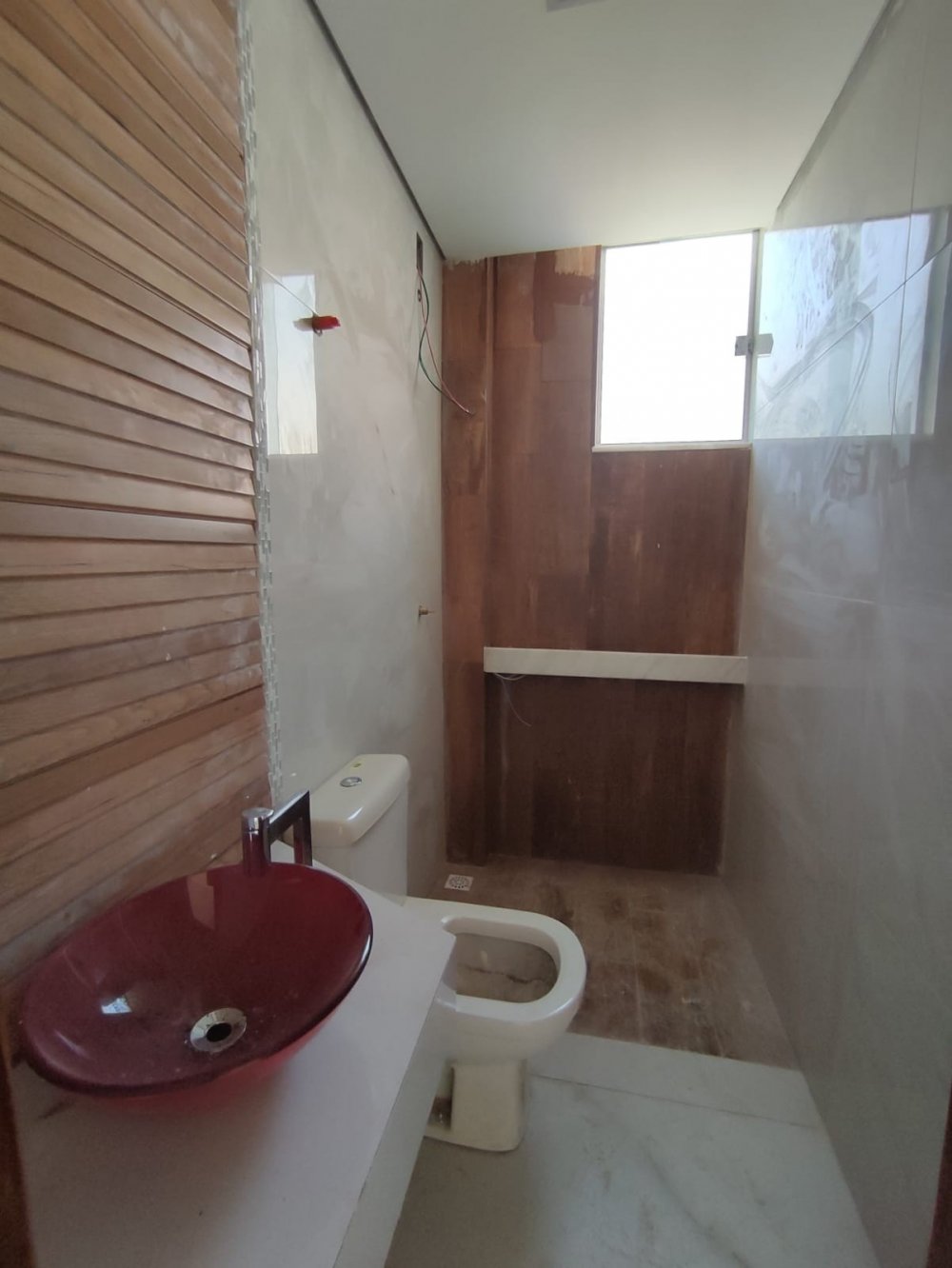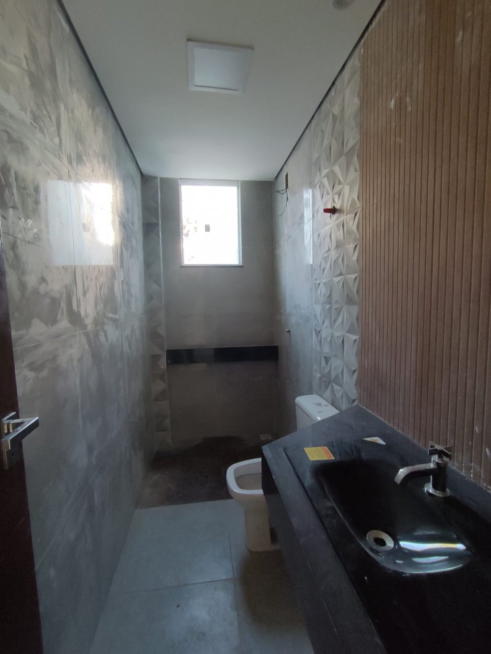 1 Banho social piso e revestimento em porcelanato, Bancada de granito, teto rebaixado, Nicho.