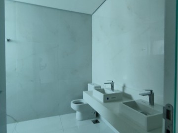 4 Suíte piso e revestimento em porcelanato, Bancada de granito, teto rebaixado, todos preparaodo para água quente,Nicho, sendo uma master, previsão para hidromassagem, .
