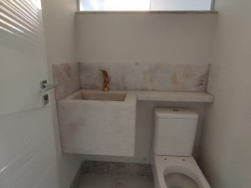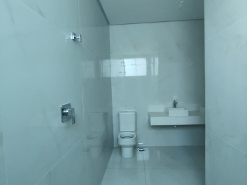 1 Um Lavabo piso porcelanato, Bancada de granito.