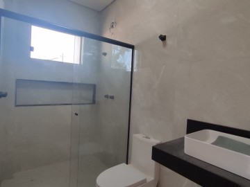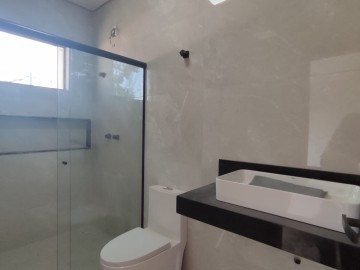 1 Banho social piso e revestimento em porcelanato, Bancada de granito, teto rebaixado, Nicho, preparado para água quente, Boxx Blindex.