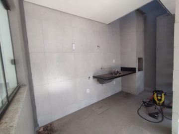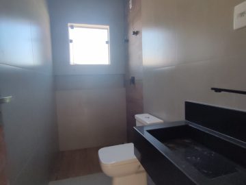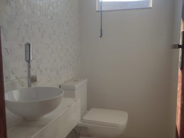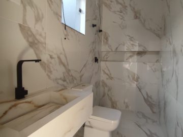1 Banho social piso e revestimento em porcelanato, Bancada de granito, teto rebaixado, preparado para água quente.