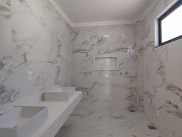 1 Suíte piso e revestimento em porcelanato, Bancada de granito teto rebaixado, Nicho, dois ponto para chuveiro.
