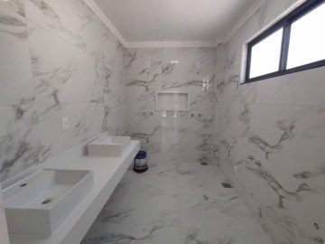1 Banho social piso e revestimento em porcelanato, Bancada de granito, teto rebaixado, Nicho, preparado para água quente.