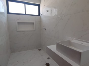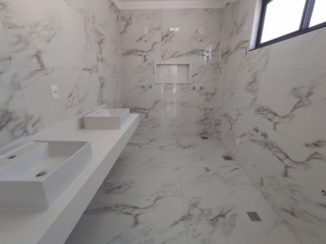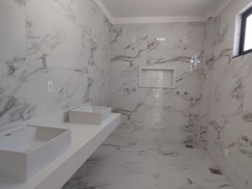 1 Suíte master piso e revestimento em porcelanato, Bancada de granito com duas cubas, teto rebaixado, Nicho, dois ponto para chuveiro, preparado para água quente.