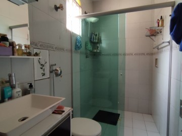 1 Banho social piso e revestimento em porcelanato, lavatório, Box Blindex.