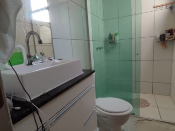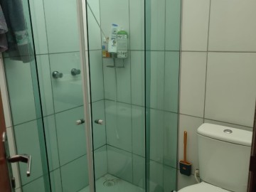 1 Banho social piso e revestimento em porcelanato, Bancada de granito, amário planejado, Box blindex.
