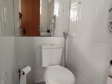 1 Um Lavabo piso porcelanato, Bancada de granito.