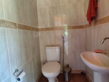 1 Banho social piso e revestimento em porcelanato, Bancada de granito.