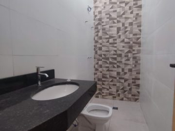 1 Banho social piso e revestimento em porcelanato, Bancada de granito, prepara para água quente.