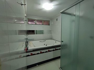 1 Suíte piso e revestimento em ceramica, Bancada de granito, Banheira de hidromassagem, Box Blindex, espelho.