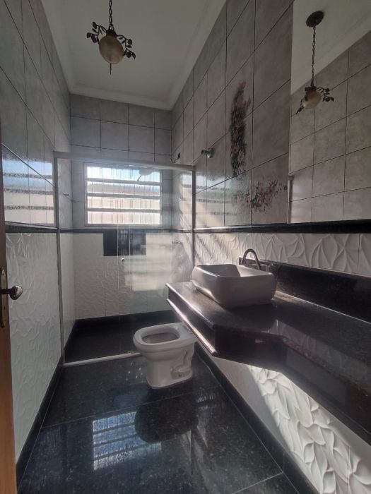 1 Banho social piso granito e revestimento em cerâmicas, Bancada em granito, água quente, Nicho.